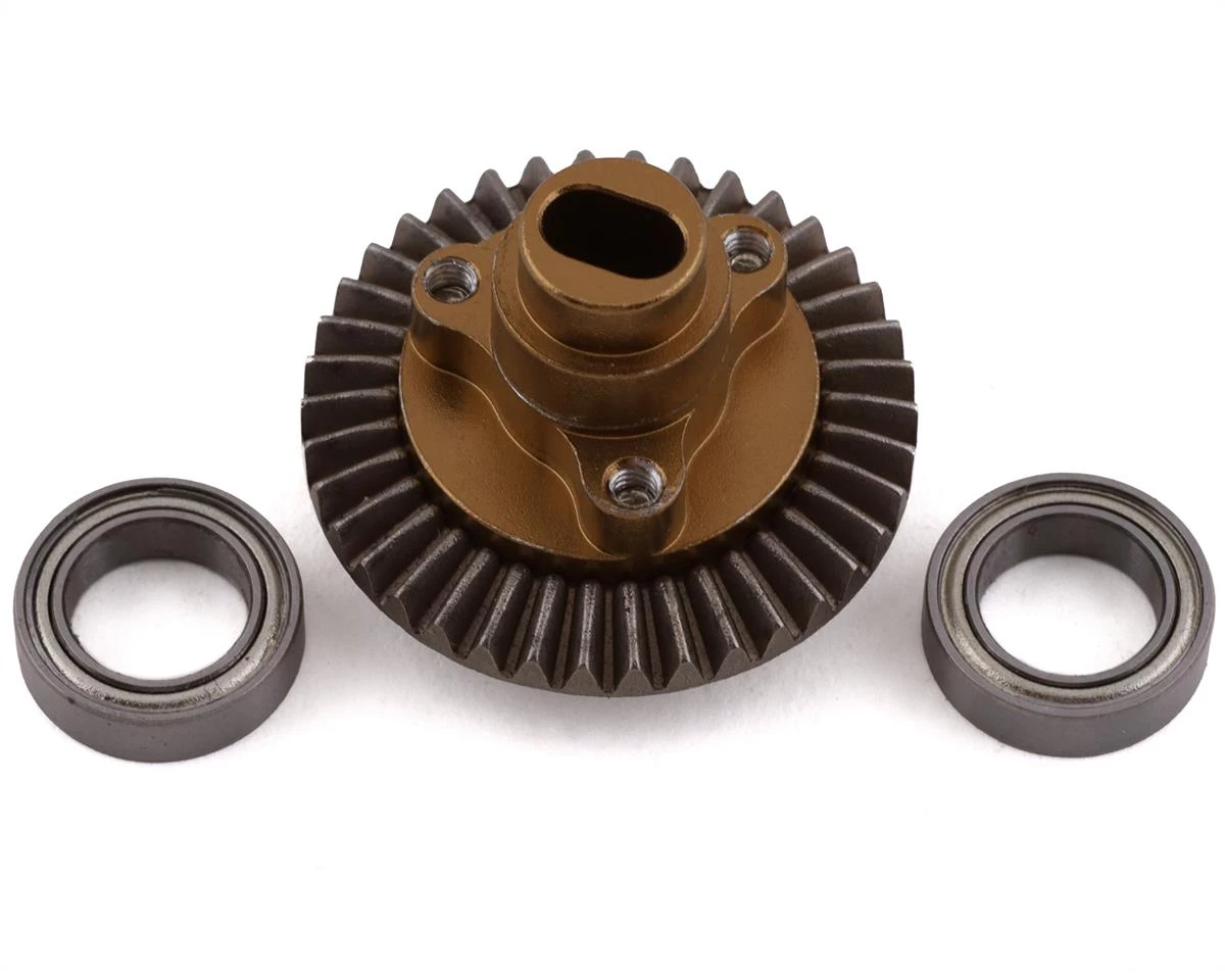 Redcat Aluminum Differential Locker with 38T Ring Gear. This optional differential locker and ring gear is intended to upgrade the front or rear gearbox on the Redcat Everest-16. Package includes one assembled locker with ring gear and two bearings.