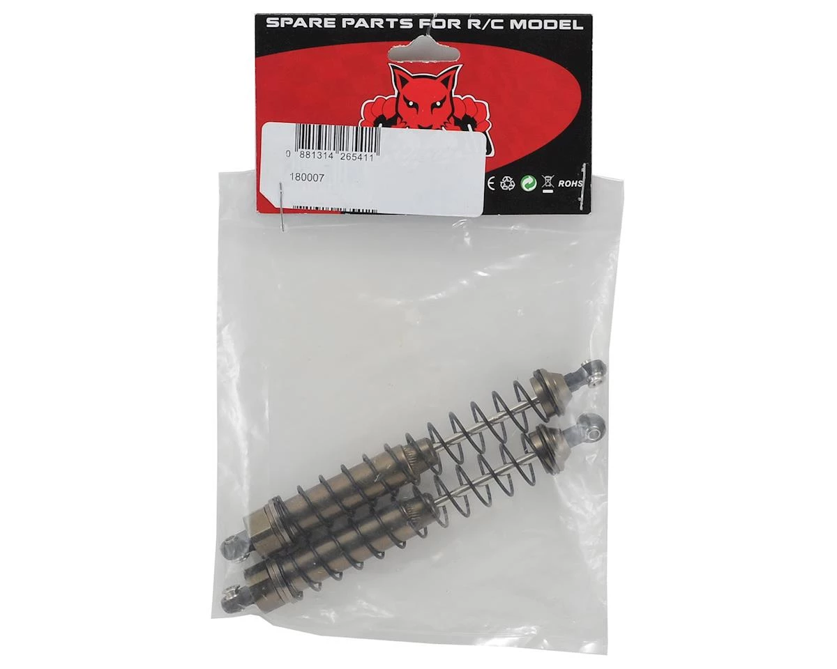 This is a pack of two optional Redcat Racing Complete Shock Absorbers. These shocks come assembled and are made from many aluminum parts, including the shock body, upper cap and lower spring retainer.
