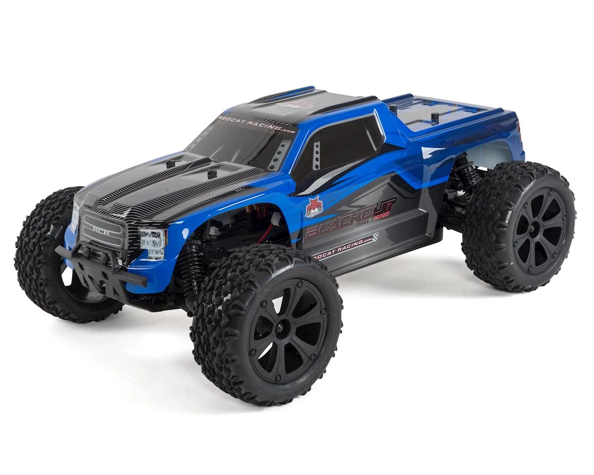 The Redcat Racing Blackout XTE PRO 1/10 Electric 4wd Monster Truck is equipped with a powerful KV3800 brushless electric motor with built-in heat sink, and forward/reverse ESC. Ready to run out of the box, the Blackout XTE PRO is eager to heat up the neighborhood. Complete with LIPO battery and charger, this monster truck has everything you need to get started. Just add AA batteries for the transmitter.