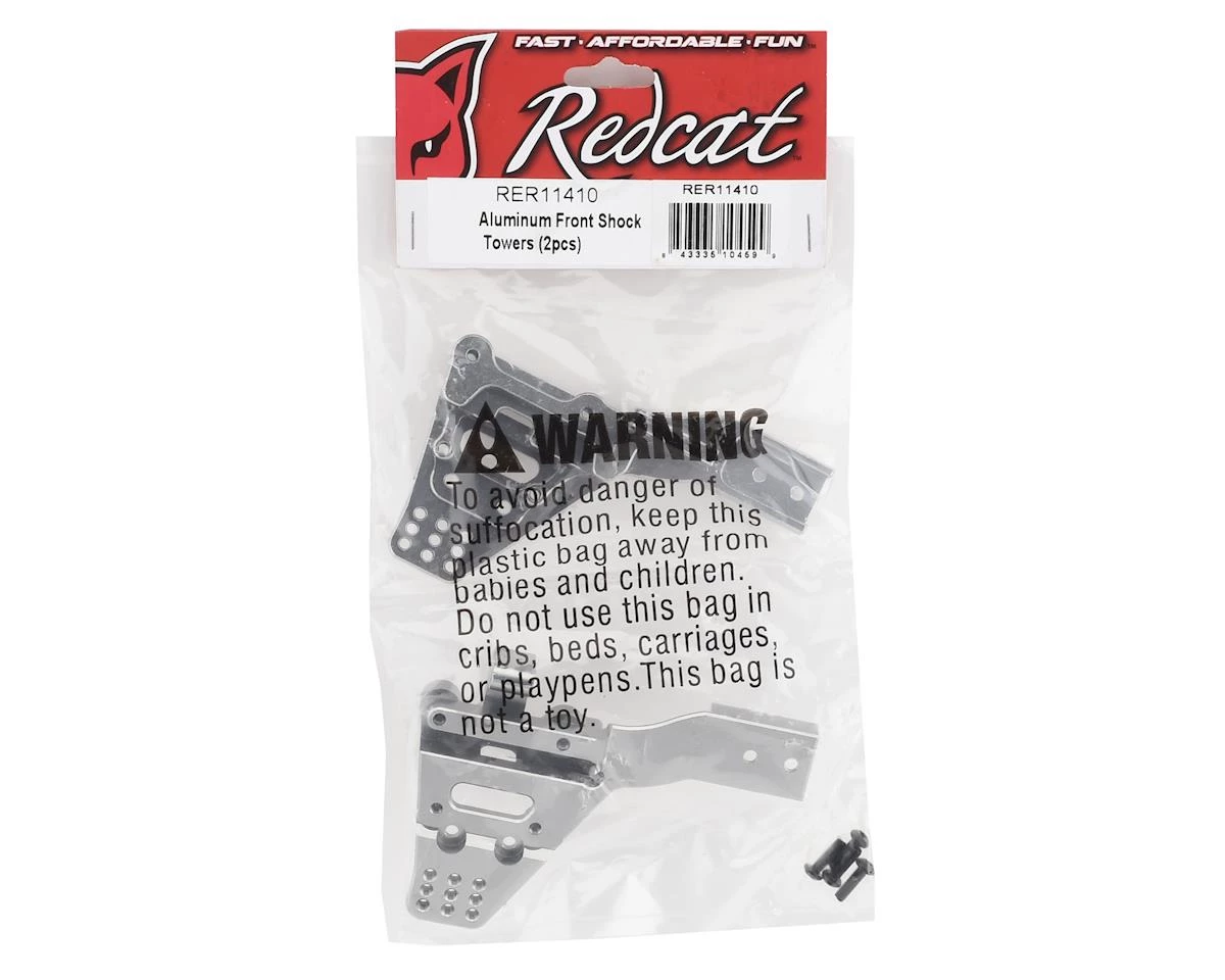 Redcat Gen8 Aluminum Front Shock Towers. These mounts are an aluminum option for the Redcat Gen8. These upgrades will offer improved strength and durability, and will eliminate the flex associated with the stock plastic parts. Package includes two shock mounts and hardware.