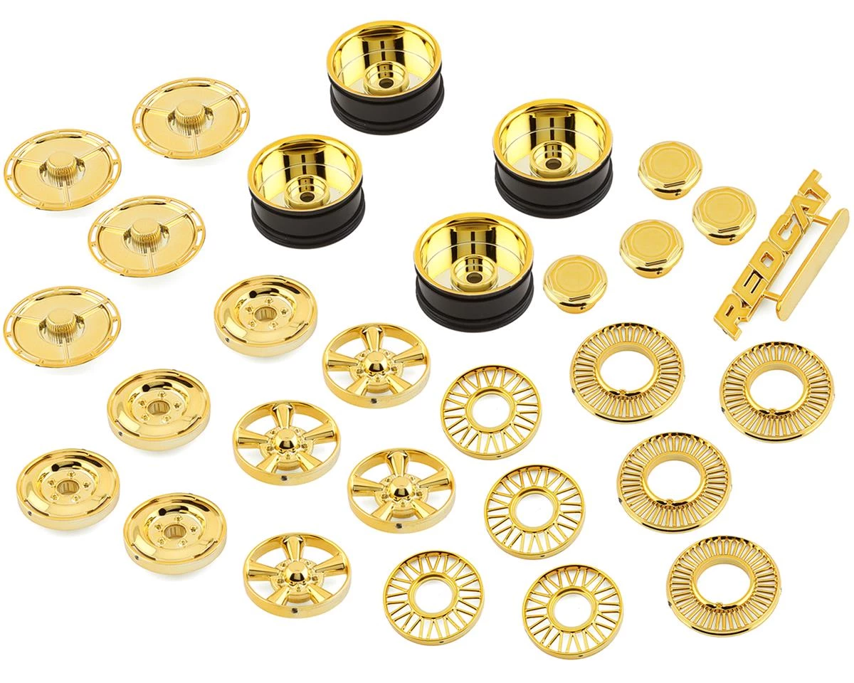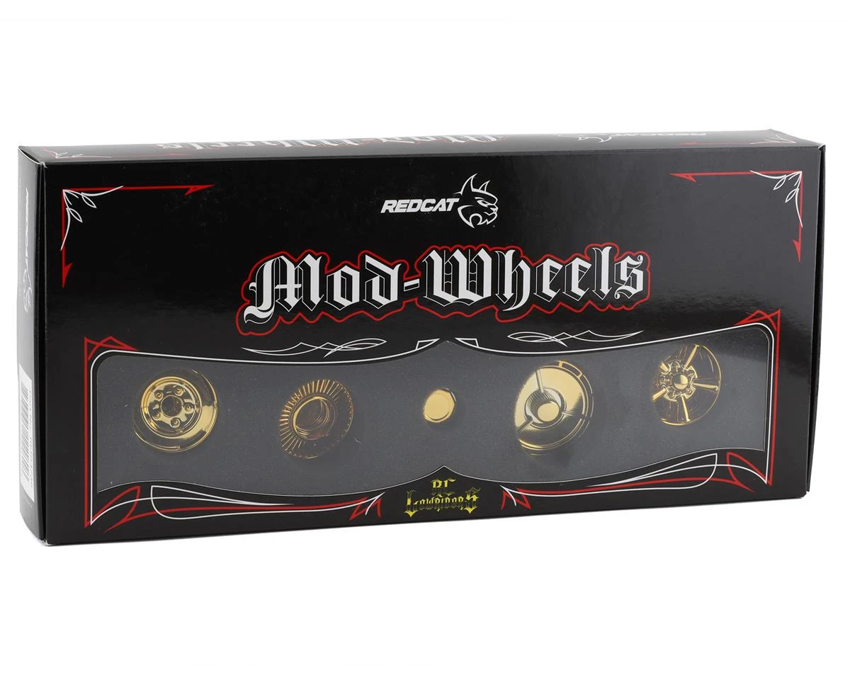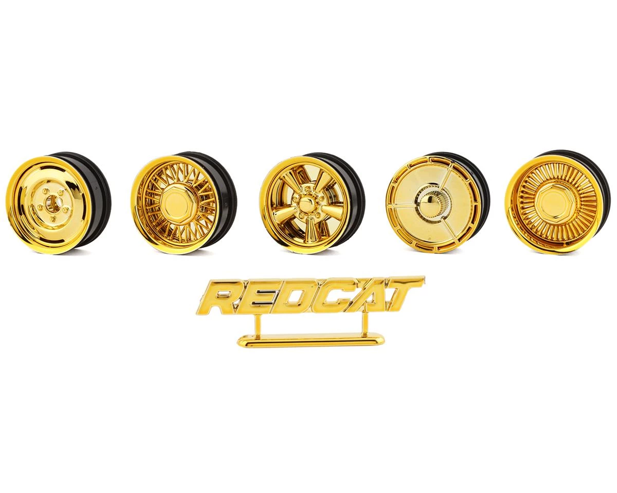 The Redcat Lowrider Mod-Wheels are a highly detailed scale wheel designed for the Redcat Lowrider series. These optional wheels feature four interchangeable wheel discs to give your Redcat Lowrider the perfect look. Using these wheel discs allows you to choose from Wire Discs, Steelie, Kustom or Impala SS styling. The included wheel blanks work with any standard 12mm hex and are available in chrome or gold finishing for perfect fit and finish.