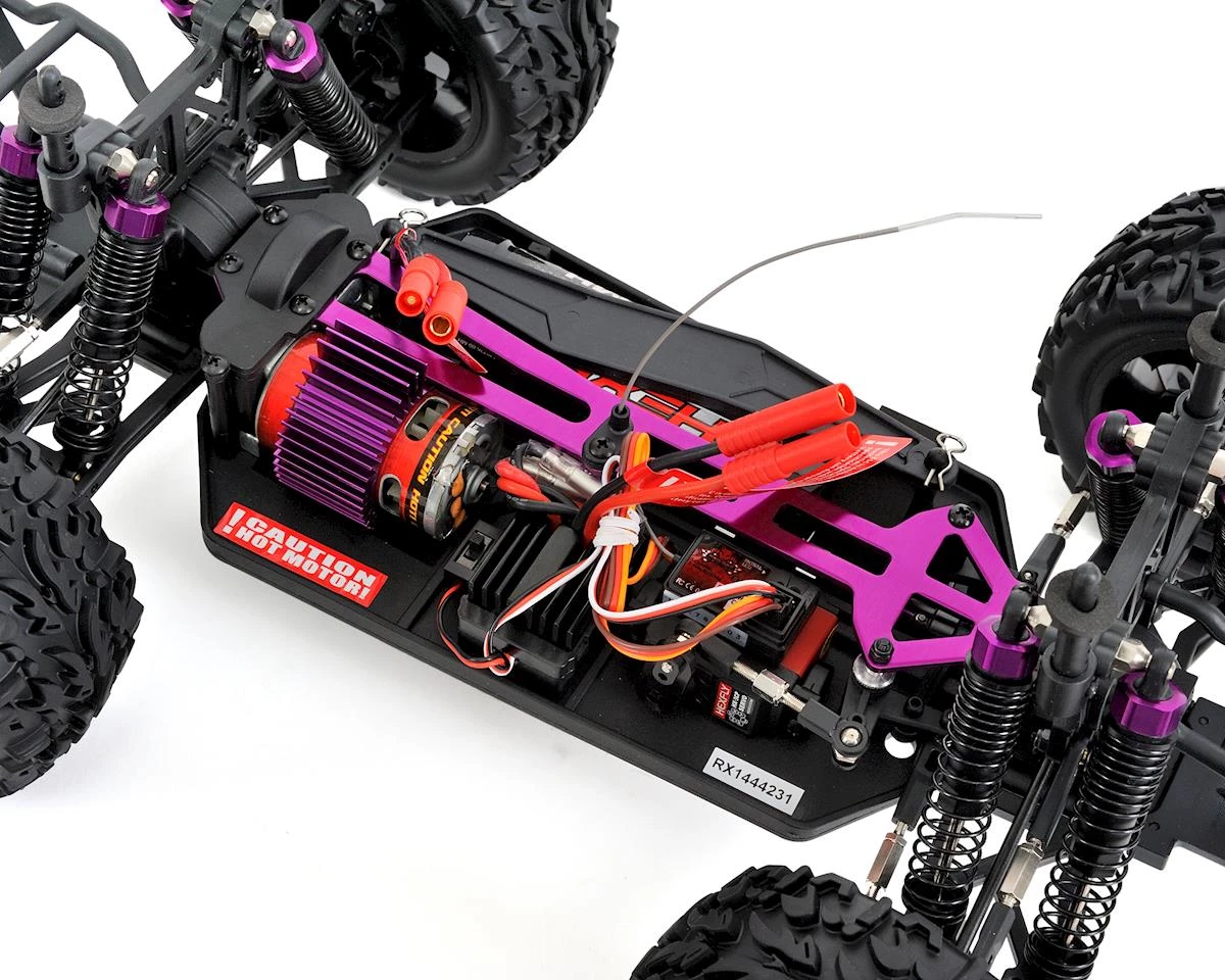 A shaft drive 4WD drivetrain provides all the traction you need to maneuver the toughest obstacles, while the lightweight plastic chassis, and independent suspension with eight aluminum cap oil filled coil over shocks deliver rock solid performance that is fast and affordable.